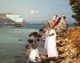 You drop anchor to listen, but the beautiful music entrances you all, and you jump overboard and swim to the island. As you reach the shore you are attacked and eaten when the singers, the Sirens, turn into foul monsters.