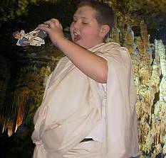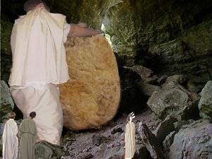 Polyphemus the Cyclops, a huge, one-eyed monster, returns to his cave. He rolls an immense stone across the entrance, then lights a fire.