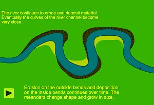 bank on the outside of the bend is eaten away (eroded) by fast flowing