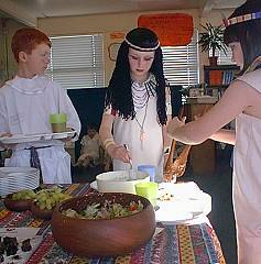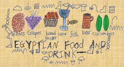 In Egyptian times, bread made from grain was the main food for ordinary people. They also drank beer made from grain, and even the children drank it, but it was not as strong as modern beer. Egyptians also ate a lot of vegetables, such as onions, cucumbers, leeks, beans, garlic and lettuce. EGYPTIAN FEAST For our Egyptian feast we prepared Nile