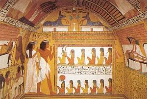 The Egyptians used pyramids in the Old Kingdom and underground tombs in the New Kingdom. The Great pyramid had a chamber for the kings, a chamber for the queens, an empty chamber and a hidden entrance. | ![]() |